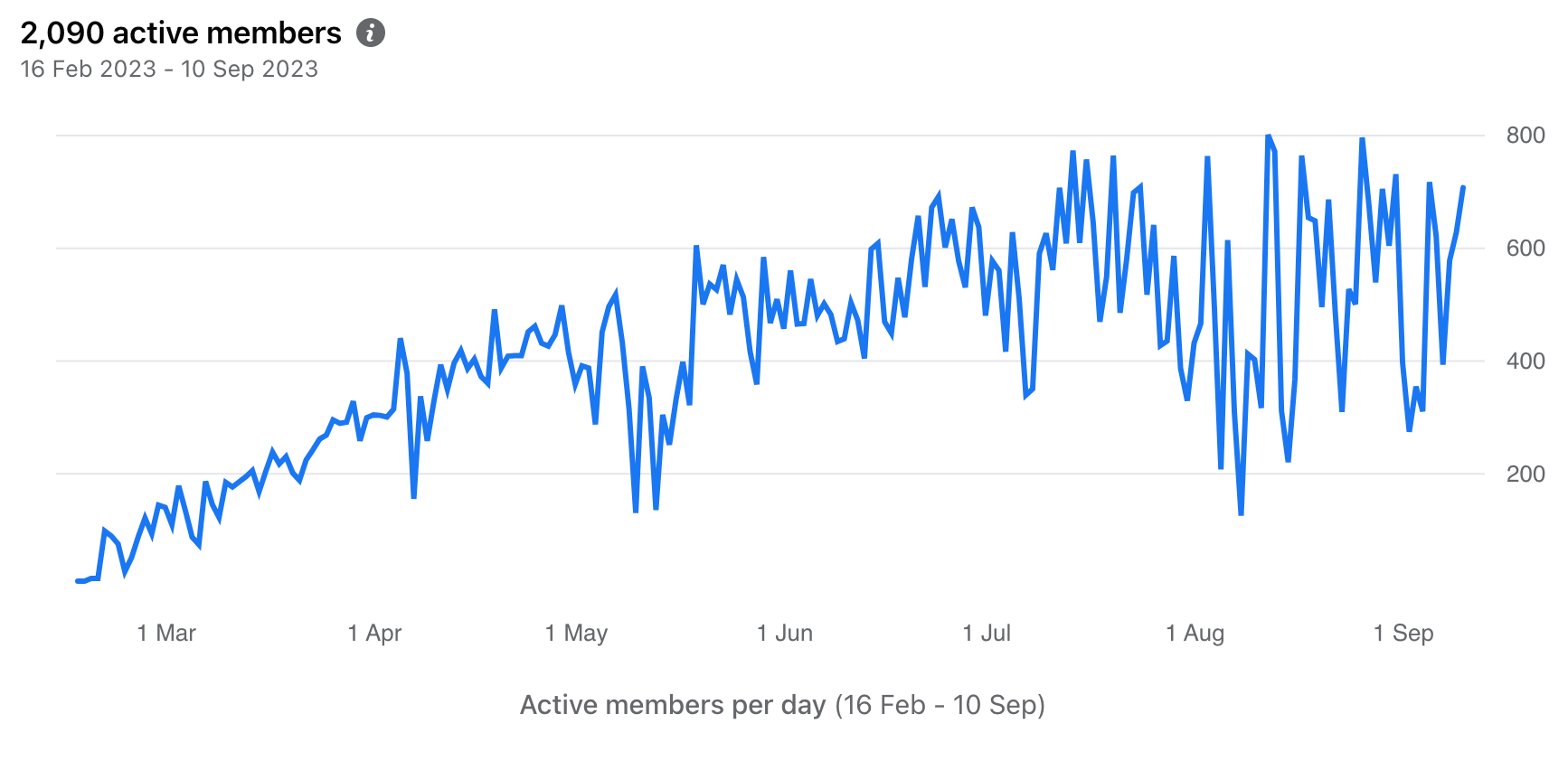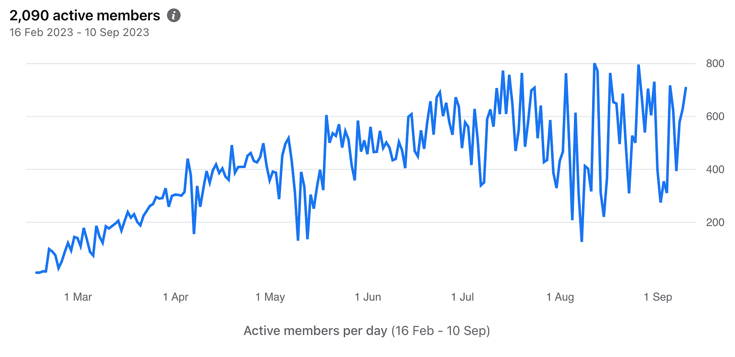 Photo: Activity stats from my Facebook Affinity Designer group. A bit of a dip during our summer break.